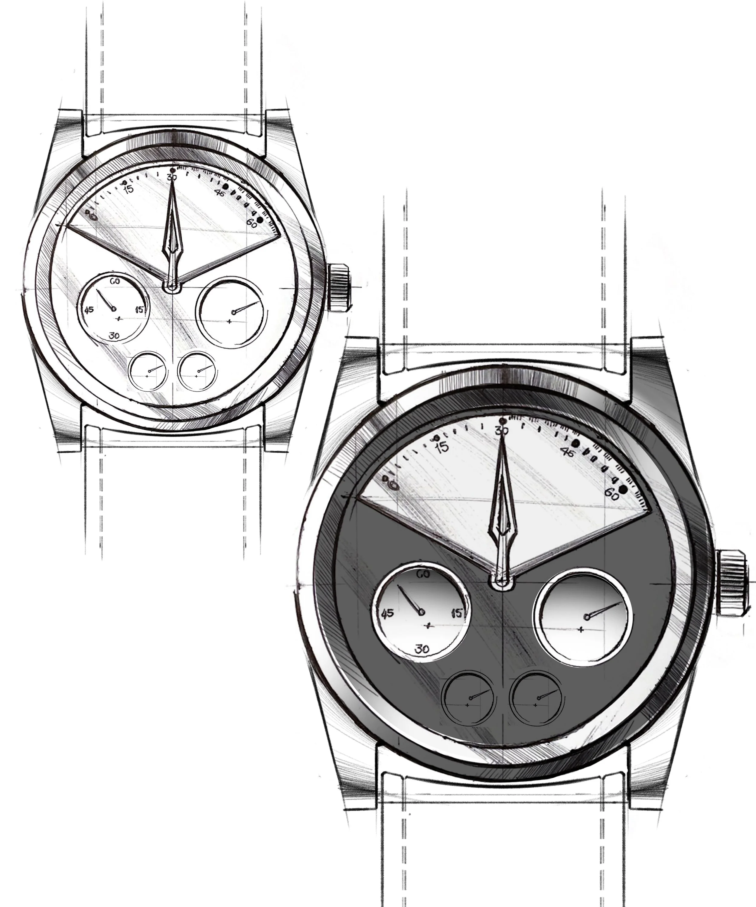I am very drawn to design and aesthetic predominantly of the late-18th/early-19th century of watchmaking, in particular, the dial layouts of the better known Breguet, Louis Moinet, and Auguste Berthoud and lesser known Sévin, Nicolas Folin, and Georges-Adrien Merlet. These makers were pioneers not only in technical watchmaking but, more pertinent to my story, tying in the decorative aspects to the artistically evolving industry. Hence, the coming novelties under the Havid Nagan brand will be more complicated and incorporate off-centered layouts and technically advanced compositions. An example of this is seen in the first drawings of the Classic Two, a watch I won’t debut until sometime in mid-2026.